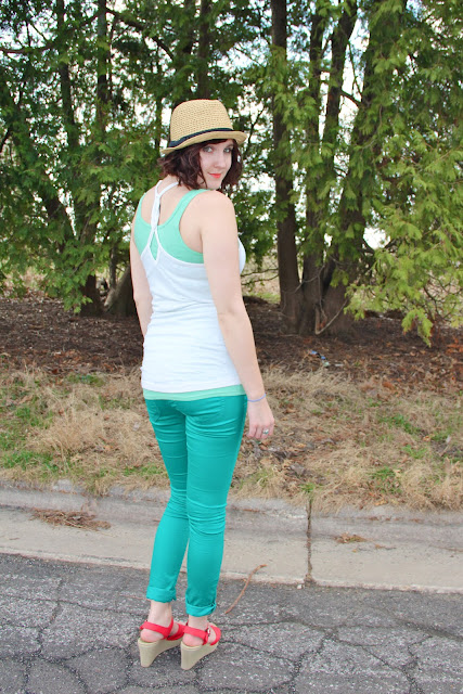 Jeans: Target // Green Tank: Target // White Tank: Wet Seal // Shoes: Crocs // Hat: Wet Seal // Watch: Betsey Johnson // Necklaces: JewelMint
